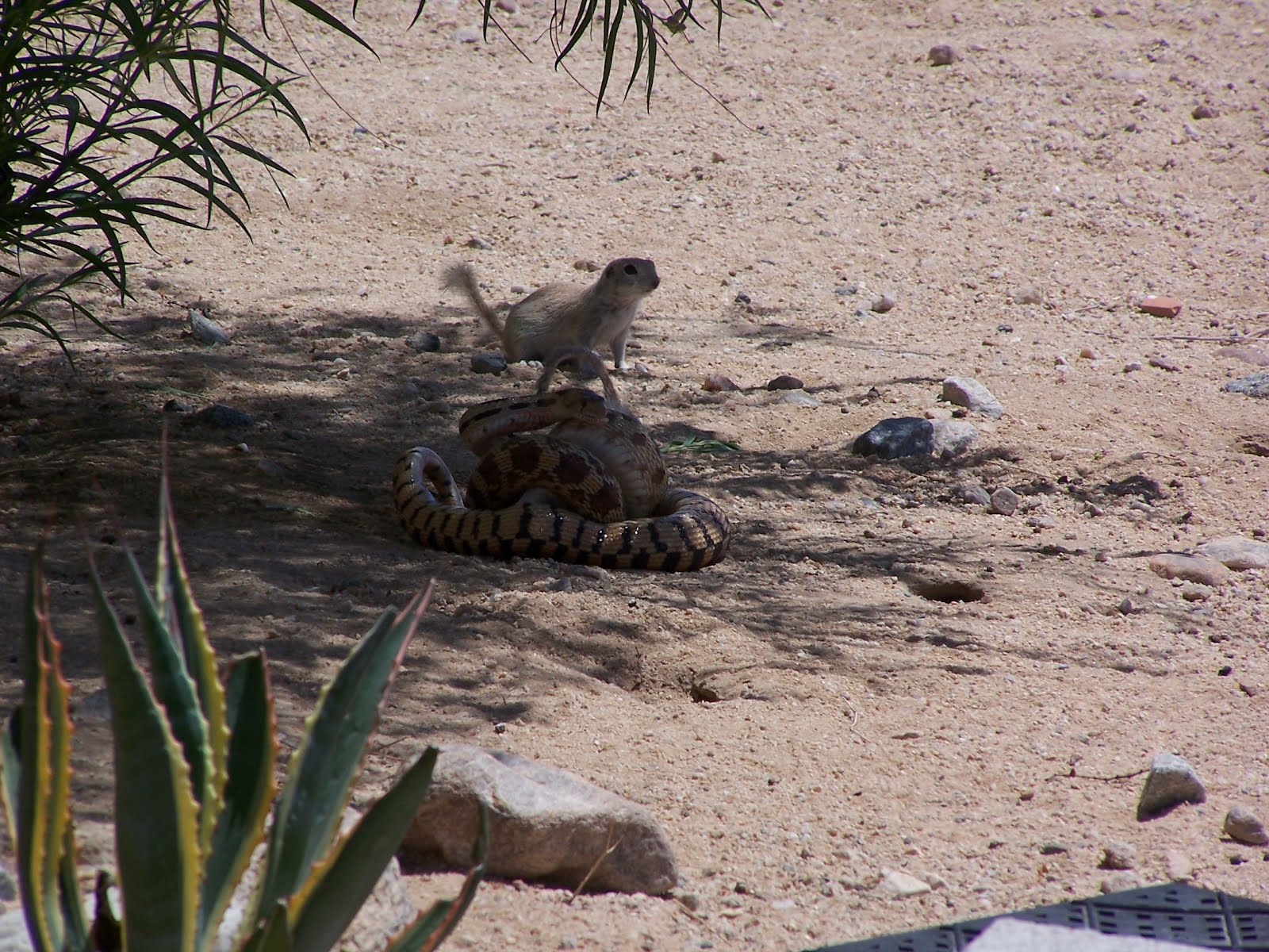 Friday 04- it was windy last night but stopped by morning then the temps rose into the 90s. I did my stretches, lifted dumbbells, rode my bike, core trainer, yoga, lifted weights, punched heavy bag, and ran up the hill and back carrying 5lbs in each hand. I heard a horrible squealing coming from outside underneath the desert willow tree. I ran out to see what it was about. There stood a prairie dog watching its mate being eaten by a snake. The little prairie dog was intent on trying to help its mate and looked me square in the eyes pleading for help. I was too late on the scene, its mate little body already crushed by those mighty muscles of the snake's. The prairie dog stayed with its mate until the end, knowing there was nothing to be done. It's the way of the desert, but it still made me sad. Mac came by with his laptop that we messed around with and kept us occupied for several hours.