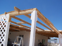 I did some building of the roof in the front section. I must have spent four hours or more in the heat, but with a few trips inside to cool off and drink lots of water. I would have continued working but the tools, nails, wood, and other inanimate entities turned on me and I thought it best I stopped before I gotten hurt.